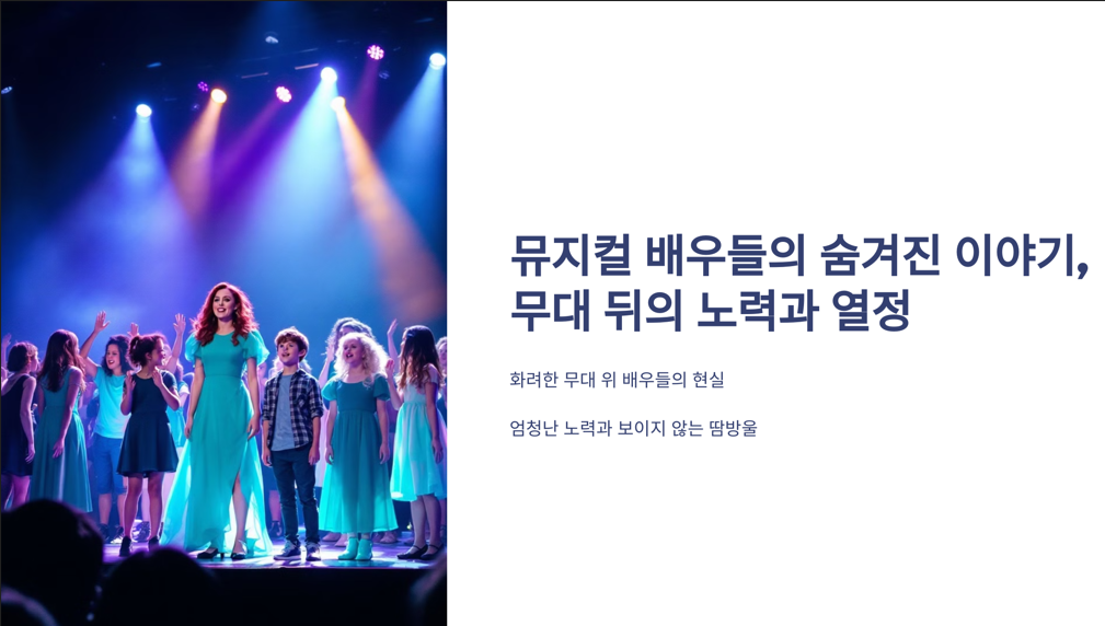오늘은 뮤지컬 배우들이 겪는 현실적인 이야기와 무대 뒤의 노력을 공개해 볼게요!