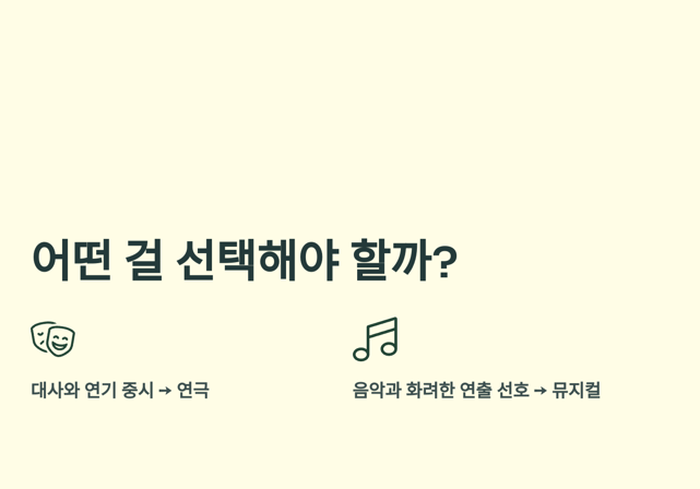 이제 중요한 선택의 순간! 연극과 뮤지컬 중 어떤 걸 골라야 할까요?