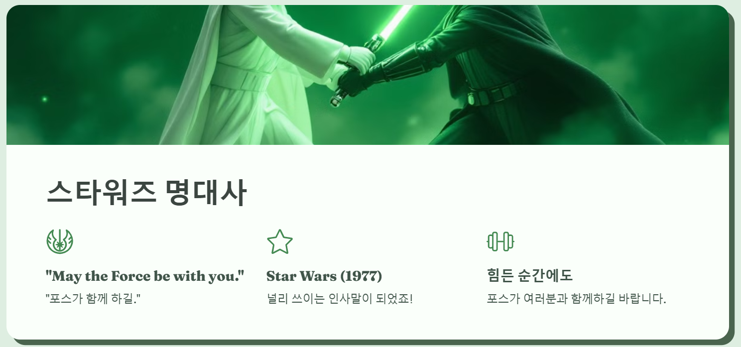 이제는 영화뿐만 아니라 현실에서도 널리 쓰이는 인사말이 되었죠! 힘든 순간에도 포스가 여러분과 함께하길 바랍니다.