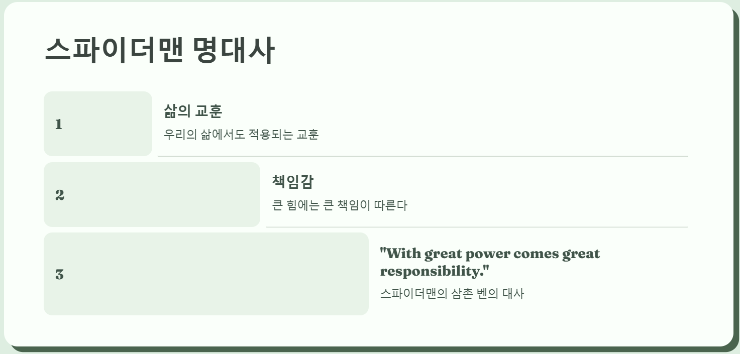 스파이더맨의 삼촌 벤이 한 이 대사는 단순한 히어로 영화 대사를 넘어, 우리의 삶에서도 적용되는 교훈이에요.