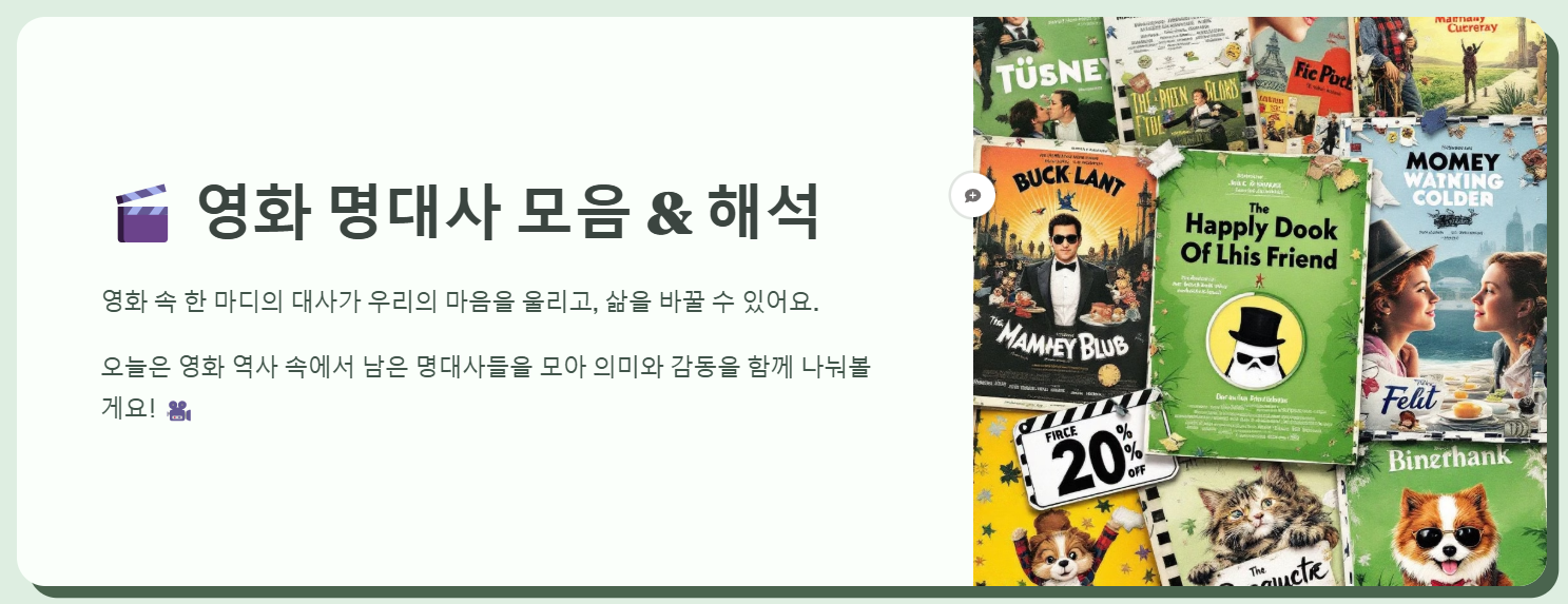 영화 속 한 마디의 대사가 우리의 마음을 울리고, 삶을 바꿀 수도 있어요. 오늘은 영화 역사 속에서 남은 명대사들을 모아 의미와 감동을 함께 나눠볼게요!