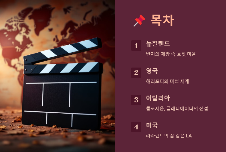 영화 속에서 봤던 그 장소, 직접 가볼 수 있다면 어떨까요? 🎥 스크린 속에서만 보던 명장면들을 현실에서 만나는 경험, 상상만 해도 설레지 않나요? 오늘은 직접 방문할 수 있는 영화 촬영지들을 소개해 드릴게요!