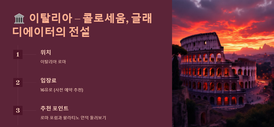 🏛️ 이탈리아 – 콜로세움, 글래디에이터의 전설