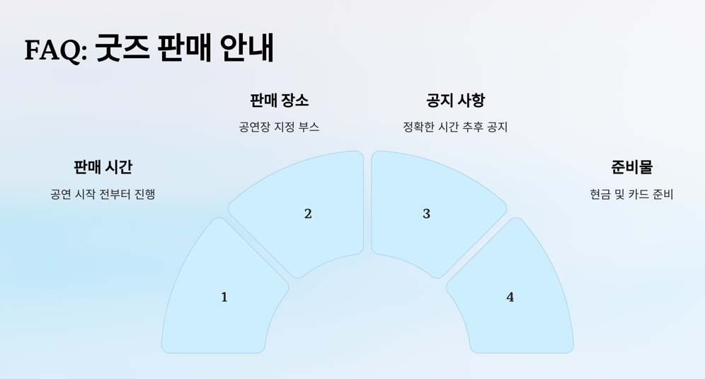 굿즈 판매는 공연 시작 전부터 진행될 예정이며, 정확한 시간은 추후 공지될 예정입니다.