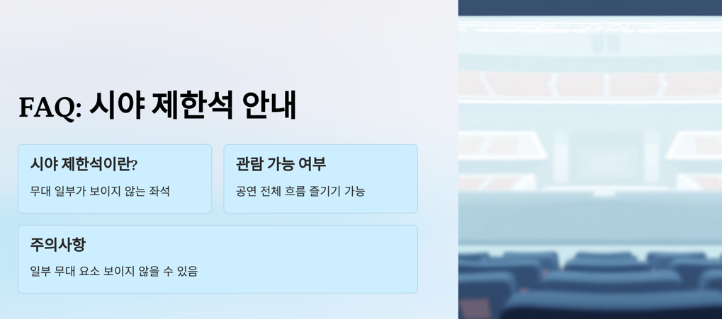 시야 제한석은 무대의 일부가 보이지 않을 수 있는 좌석을 의미합니다.