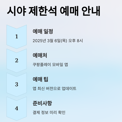 - 시야 제한석 예매 일정: 2025년 3월 6일(목) 오후 8시