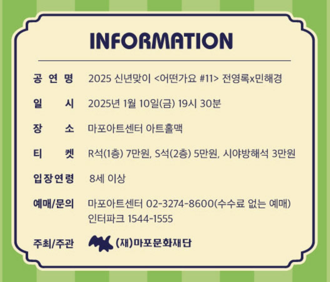 • 수수료 없는 예매:마포아트센터 홈페이지