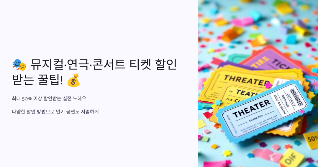 뮤지컬, 연극, 콘서트 티켓을 저렴하게 예매하는 방법이 궁금하시죠? 인기 공연일수록 가격이 부담스러울 수 있지만, 다양한 할인 방법을 활용하면 훨씬 저렴하게 즐길 수 있어요!