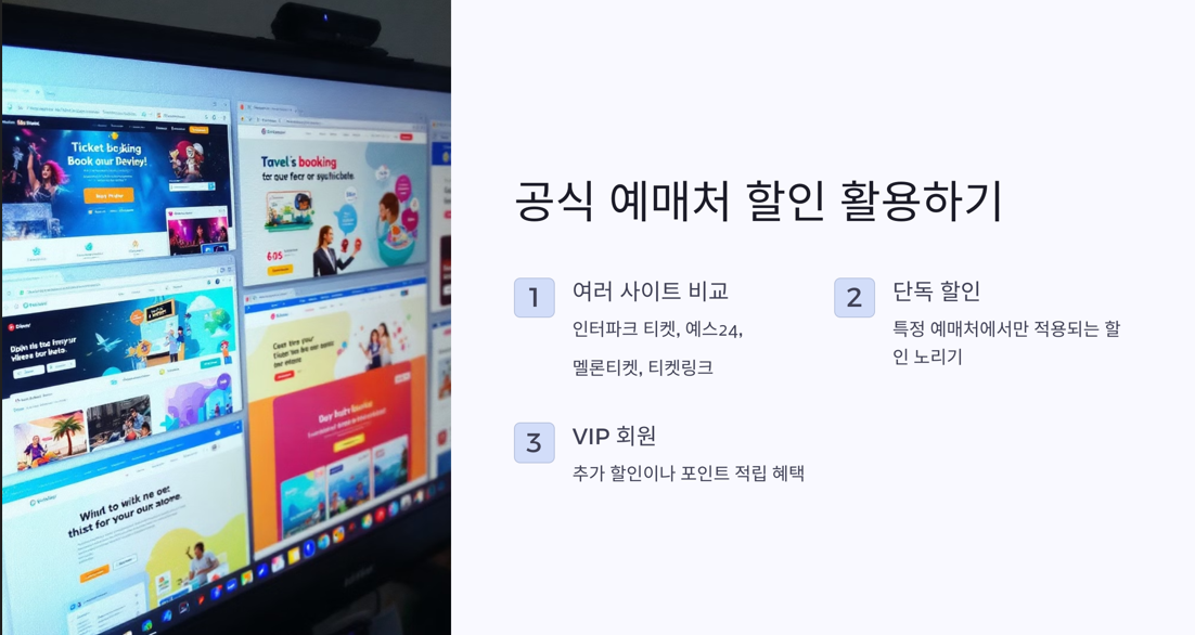 - 특정 예매처에서만 적용되는 단독 할인을 노려보세요.