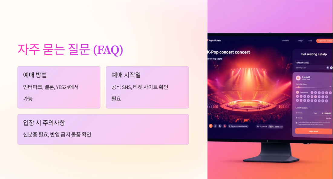대부분의 공연은 인터파크 티켓, 멜론 티켓, YES24에서 예매 가능합니다. 각 공연의 공식 예매 사이트를 꼭 확인하세요!