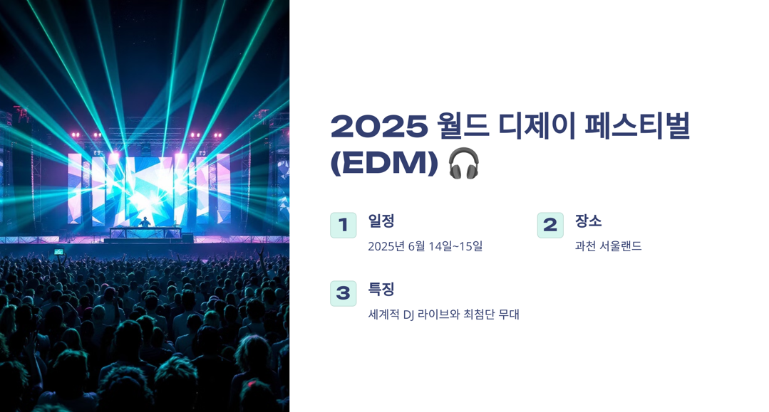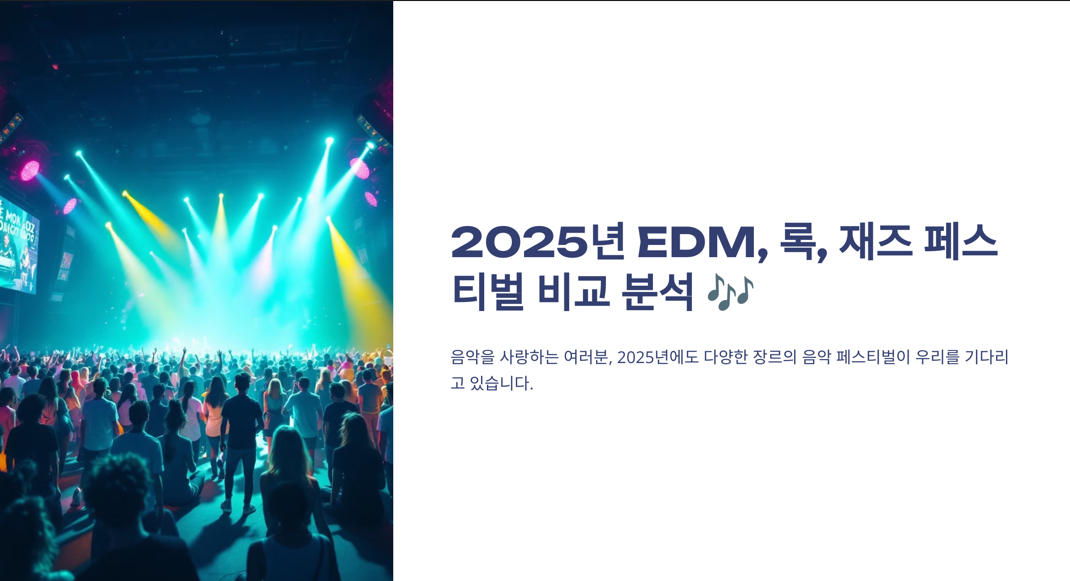 음악을 사랑하는 여러분, 2025년에도 다양한 장르의 음악 페스티벌이 우리를 기다리고 있습니다. 특히 EDM, 록, 재즈 분야에서 눈에 띄는 축제들을 소개하고 비교해 보겠습니다.
